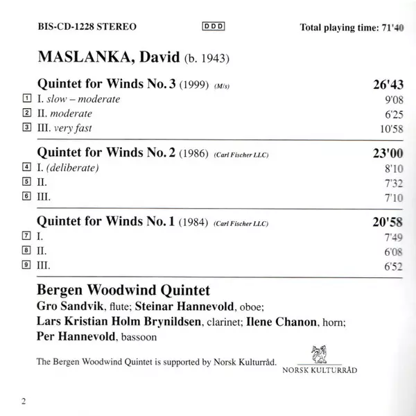 Künstler | David Maslanka | Bergen Woodwind Quintet |