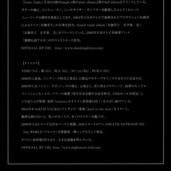 | Arranged By, Performer Nightmare (4) | Composed By Sakito | Lyrics By Sakito | |||