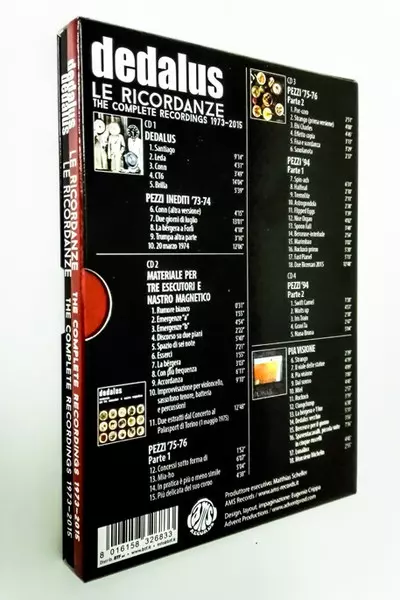 Dedalus: Le Ricordanze - The Complete Recordings 1973-2015 LTD Die Version auf 4CD/Box Set in limitierte Auflage. Diese besondere Auflage wurde veröffentlicht in Italien im Verlag AMS Records (6) am 22. Dezember 2017. Album Genres übergreifend Rock, Progressive rock und Avant-garde.
