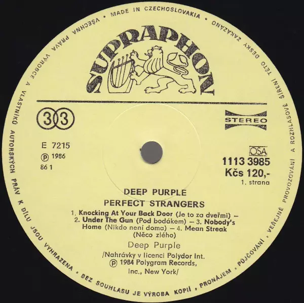 Perfect Strangers is an album by British rock band Deep Purple , released in 1984. It was the band's first album since the breakup of Mk III in 1976 and the first with singer Ian Gillan since 1974. The album was recorded at the band's own studio in England and produced by the band and Roger Glover. It was commercially successful, reaching number...