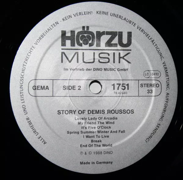 | B1 | Demis Roussos: Lovely Lady Of Arcadia | ||