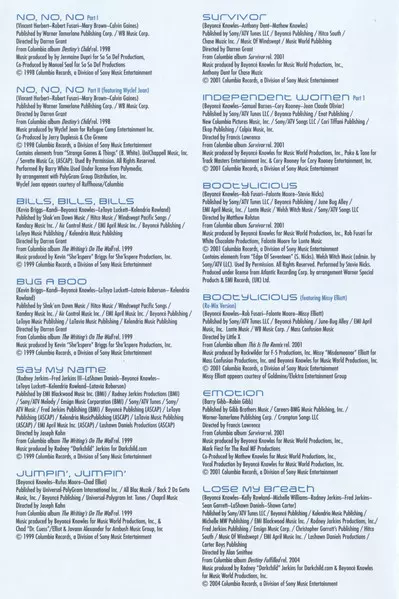 Film Director Alan Smithee (36) | Producer [Music] Rodney Jerkins | Written-By Fred Jerkins III, Kelly Rowland, LaShawn Daniels, Michelle Williams, Rodney Jerkins, Sean Garrett, Shawn Carter | Written-By, Producer [Music] Beyoncé Knowles