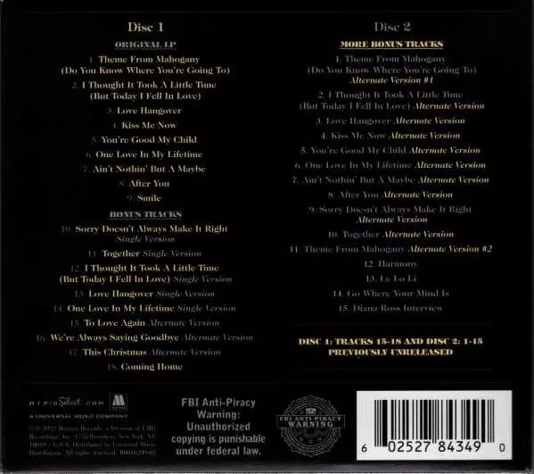 Diana Ross: Diana Ross - Expanded Edition Die Version auf 2CD in remastered Auflage. Diese besondere Auflage wurde veröffentlicht in USA im Verlag Hip-O Select In Zusammenarbeit mit Motown am 4. August 2023.