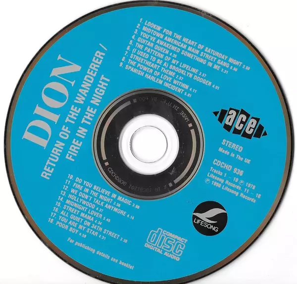 Dion: Return Of The Wanderer / Fire In The Night Die Version auf CD in remastered Auflage. Diese besondere Auflage wurde veröffentlicht in UK im Verlag Ace In Zusammenarbeit mit Lifesong am 23. Februar 2010. Album Genres übergreifend Rock und Pop.