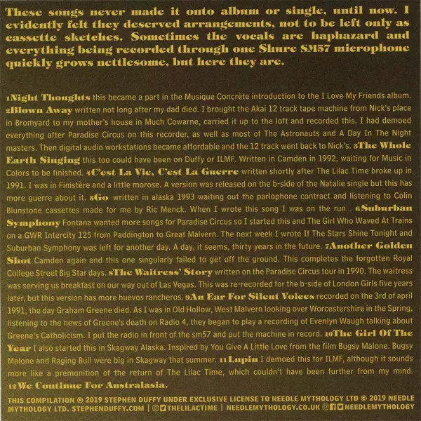 Bass Anna Piva | Drums James Powell | Engineer, Mixed By Andy Strange | Guitar, Organ, Percussion, Vocals Stephen Duffy