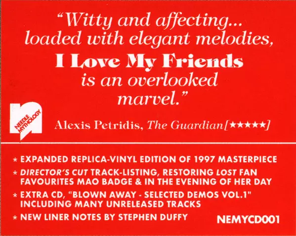 Stephen Duffy: I Love My Friends Die Version auf 2CD in remastered Auflage. Diese besondere Auflage wurde veröffentlicht in UK im Verlag Needle Mythology am 14. Juni 2019. Album Genres übergreifend Rock, Pop und Britpop.