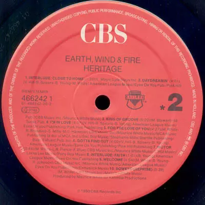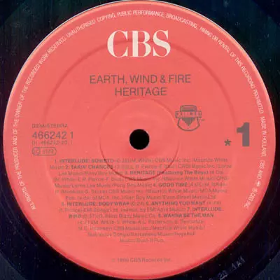 Earth, Wind & Fire: Heritage Die Version auf Vinyl LP in Standard- Auflage. Diese besondere Auflage wurde veröffentlicht in Europa im Verlag CBS Im Jahr 1990. Album Genres übergreifend Rock, Elektronische Musik, Funk / Soul, Lateinamerikanische Musik, Downtempo und Disco.
