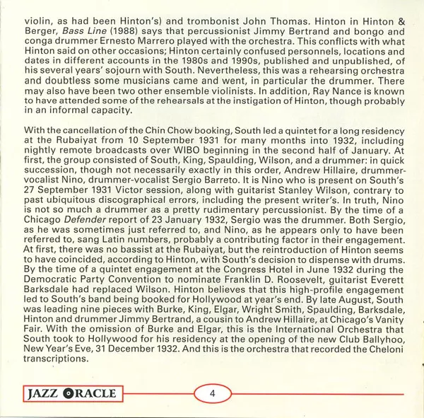 Eddie South: Recorded In Hollywood, 1933 (The Cheloni Broadcast Transcriptions) Die Version auf 3CD in remastered Auflage. Diese besondere Auflage wurde veröffentlicht in Kanada im Verlag Jazz Oracle am 19. September 2006. Album Genres übergreifend Folk, World, & Country und Jazz.