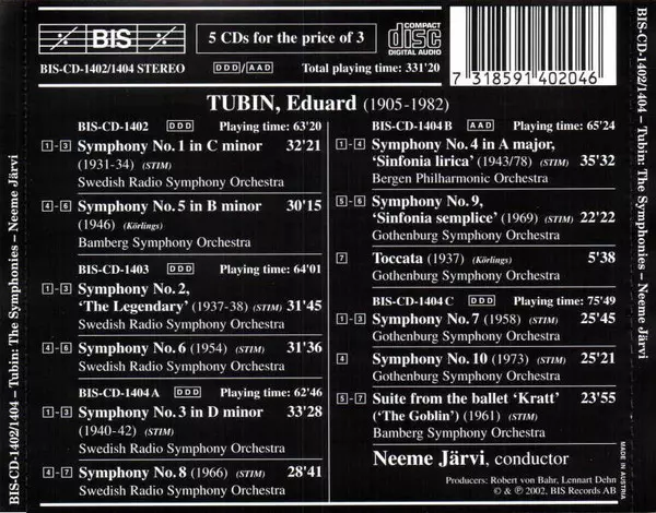 | Künstler | Neeme Järvi | Sveriges Radios Symfoniorkester | Eduard Tubin |