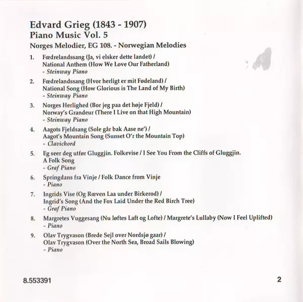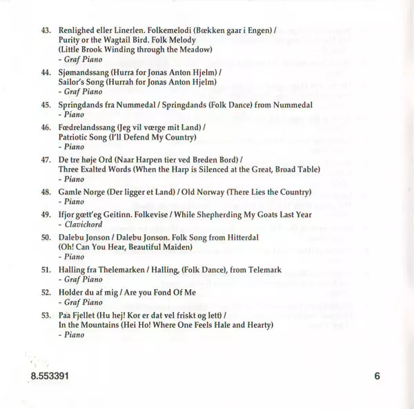 | Norges Melodier, EG 108 Nos. 1 To 63 (Norwegian Melodies) | 65:33 min |