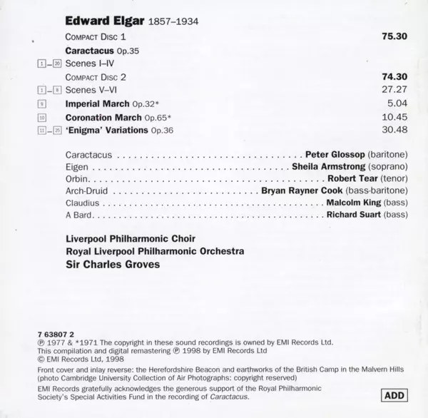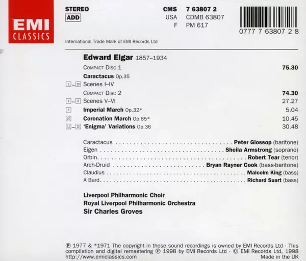 | Künstler | Sir Edward Elgar | Royal Liverpool Philharmonic Orchestra | Robert Tear | Sir Charles Groves | Brian Rayner Cook | Royal Liverpool Philharmonic Choir | Sheila Armstrong | Peter Glossop |
