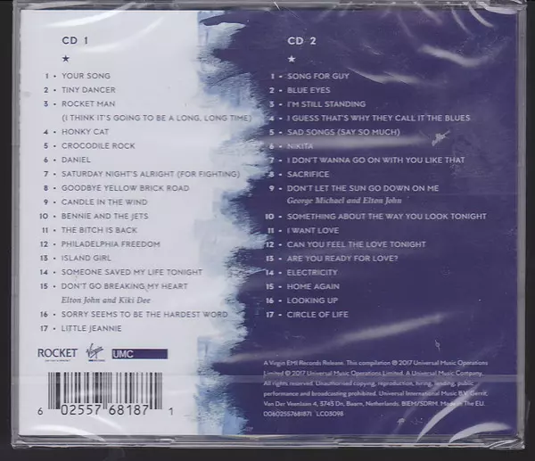 Elton John: Diamonds Die Version auf 2CD in remastered Auflage. Diese besondere Auflage wurde veröffentlicht in Europa im Verlag The Rocket Record Company In Zusammenarbeit mit Virgin EMI Records und UMC am 10. November 2017.