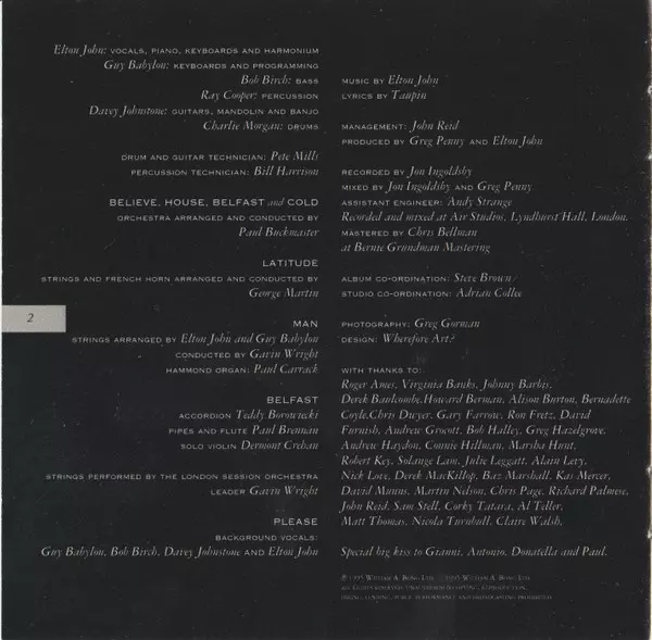Elton John's twenty-fourth album was largely recorded a year earlier, in the early months of 1994, just before Elton released new songs with Sir Tim Rice for the soundtrack of The Lion King. At the time of the release of Made In England, the band's frontman was 48 years old. "Believe", the lead single from the album that preceded Made In England...