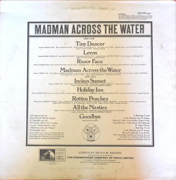 Elton John "Madman Across The Water" is a 1971 album that features some of his most popular songs, such as "Tiny Dancer" and "Levon." The album was a critical and commercial success and helped John establish himself as a major figure in the music industry.