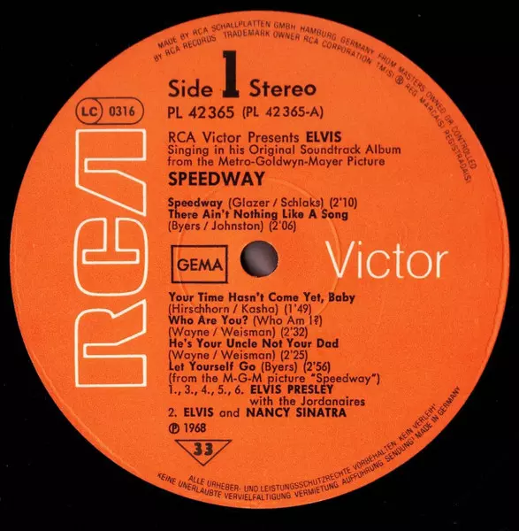 A1 | Elvis Presley, The Jordanaires: Speedway | 2:10 min | |