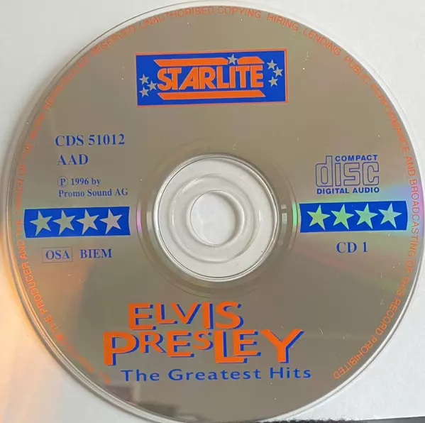 Elvis Presley: The Greatest Hits Die Version auf 3CD in Standard- Auflage. Diese besondere Auflage wurde veröffentlicht in Europa im Verlag Starlite (4) Im Jahr 1996. Album Genres übergreifend Rock und Rock & Roll.