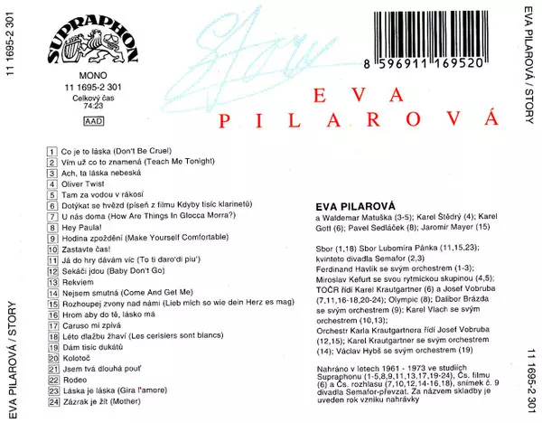 Eva Pilarová: Story Die Version auf CD in Standard- Auflage. Diese besondere Auflage wurde veröffentlicht in Tschechoslowakei im Verlag Supraphon Im Jahr 1992. Album Genres übergreifend Pop und Vokalmusik.