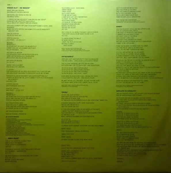 Falco Wiener Blut from 1988 is a mixture of rock and pop. The album was commercially successful and reached number one in Austria and Germany. The title track "Wiener Blut" became a number one hit in Austria. Other singles from the album, "Rock Me Amadeus" and "Jeanny", were also successful. "Rock Me Amadeus" reached number one in the United States and number two in the UK. "Jeanny" reached number one in Austria and number three in Germany.