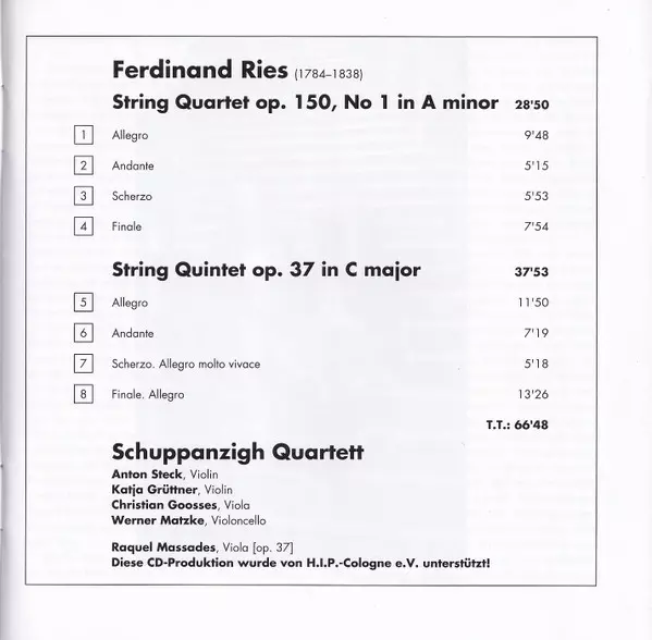 | Künstler | Ferdinand Ries | Schuppanzigh Quartett |