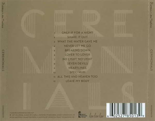 Florence And The Machine: Ceremonials Die Version auf CD in Standard- Auflage. Diese besondere Auflage wurde veröffentlicht in Europa und UK im Verlag Island Records Group In Zusammenarbeit mit Luv Luv Luv am 11. November 2011.