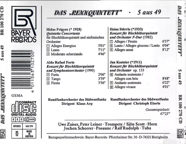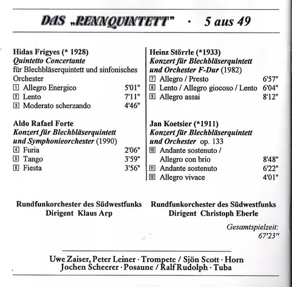 Künstler | Jan Koetsier | Das Rennquintett | Frigyes Hidas | Aldo Forte | Heinz Störrle |