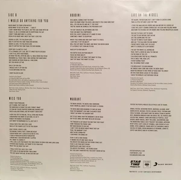 Backing Vocals Cubbie Fink, Mark Pontius | Percussion, Keyboards, Programmed By Paul Epworth | Piano, Electric Piano [Wurlitzer], Engineer [Additional Engineering] Mark Foster (9) | Recorded By, Mixed By Mark Rankin