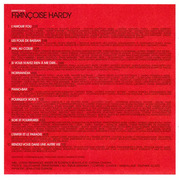 Lyrics By Françoise Hardy | Music By Pascal Colomb | Producer, Arranged By, Piano, Bass, Timbales, Sampler, Strings Pascal Colomb | Recorded By, Mixed By Bénédicte Schmitt, Pascal Colomb