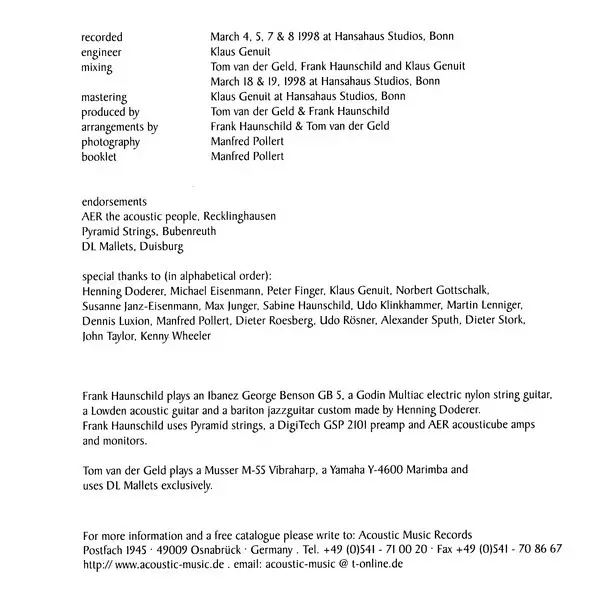 | Künstler | Frank Haunschild | Tom van der Geld |