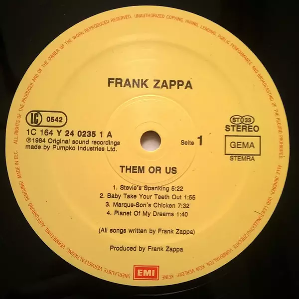 Frank Zappa: Them Or Us Die Version auf Vinyl 2LP in Standard- Auflage. Diese besondere Auflage wurde veröffentlicht in Europa im Verlag EMI In Zusammenarbeit mit Barking Pumpkin Records am 30. September 1984. Album Genres übergreifend Rock, Hard Rock, Art Rock und Avant-garde. Mixed Up Labels Gatefold Vinyl.