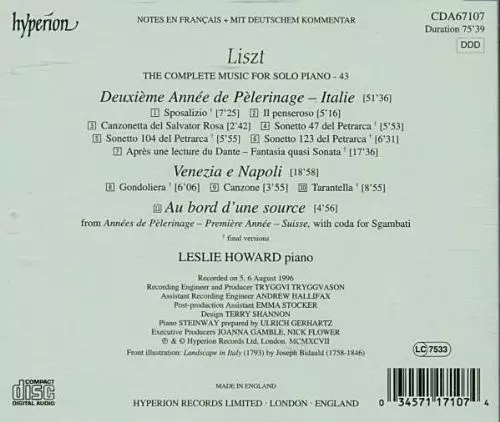 | Titel | Deuxième Année De Pèlerinage - Italie / Venezia E Napoli |