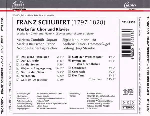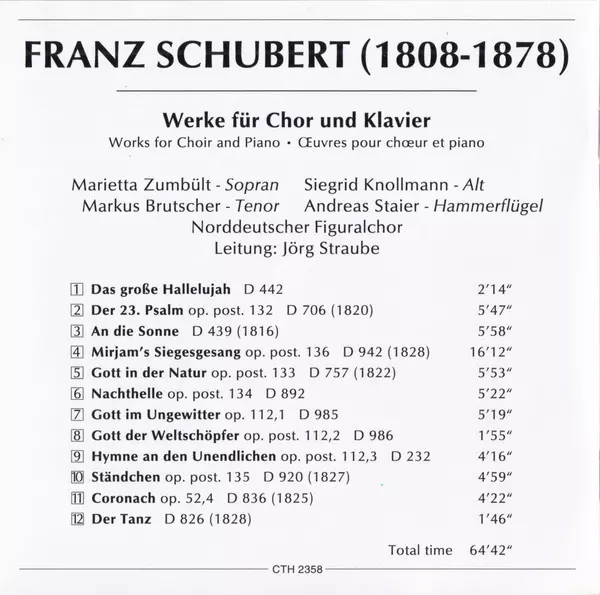 Künstler | Franz Schubert | Andreas Staier | Norddeutscher Figuralchor | Jörg Straube |