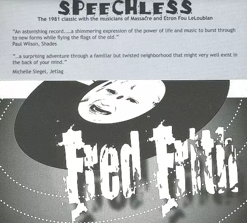 Fred Frith: Speechless Die Version auf CD in Standard- Auflage. Diese besondere Auflage wurde veröffentlicht in UK im Verlag ReR Megacorp In Zusammenarbeit mit Fred Records am 19. August 2003. Album Genres übergreifend Rock, Jazz, Experimental, Avant-garde und Free Improvisation.