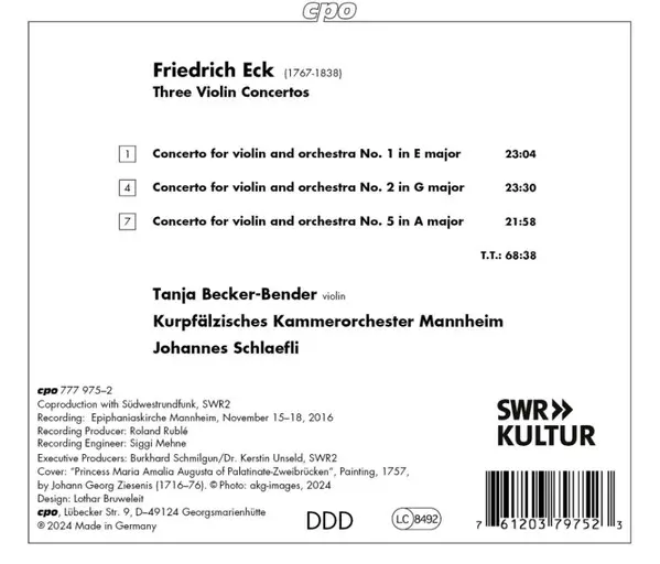 | Künstler | Kurpfälzisches Kammerorchester Mannheim | Tanja Becker-Bender | Johannes Schlaefli | Johann Friedrich Eck |