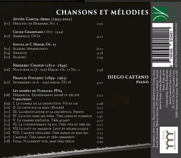 | Künstler | Frédéric Chopin | Francis Poulenc | Cecile Chaminade | Antón García Abril | Diego Caetano |
