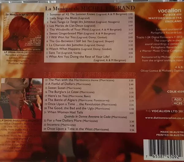 | Titel | La Musique De Michel Legrand / La Musique D'Ennio Morricone |