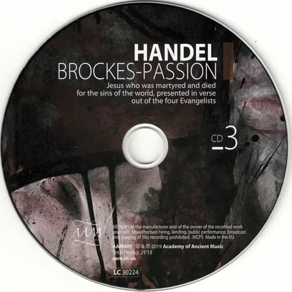 Georg Friedrich Händel: Brockes-Passion Die Version auf 3CD/Box Set in Standard- Auflage. Diese besondere Auflage wurde veröffentlicht in Europa im Verlag AAM Records am 15. November 2019. Album Genres übergreifend Klassische Musik, Barockmusik und Oratorio. Cardboard Sleeve.