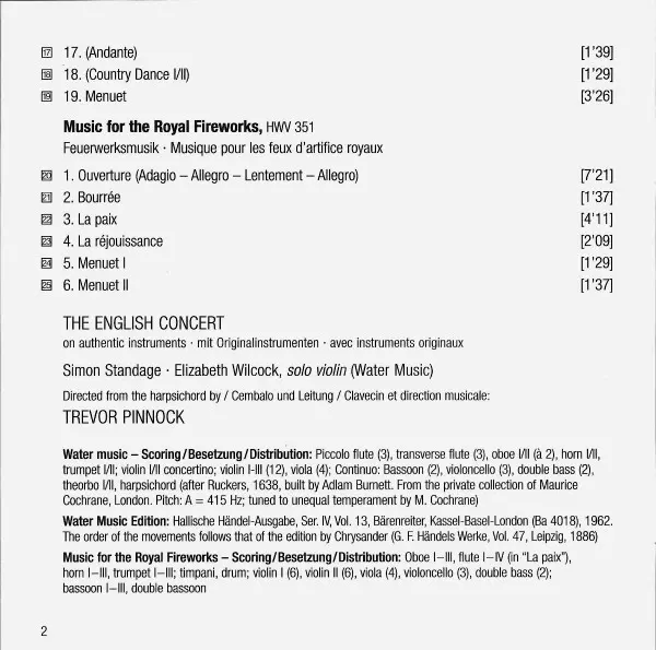 Titel | Water Music / Music For The Royal Fireworks |