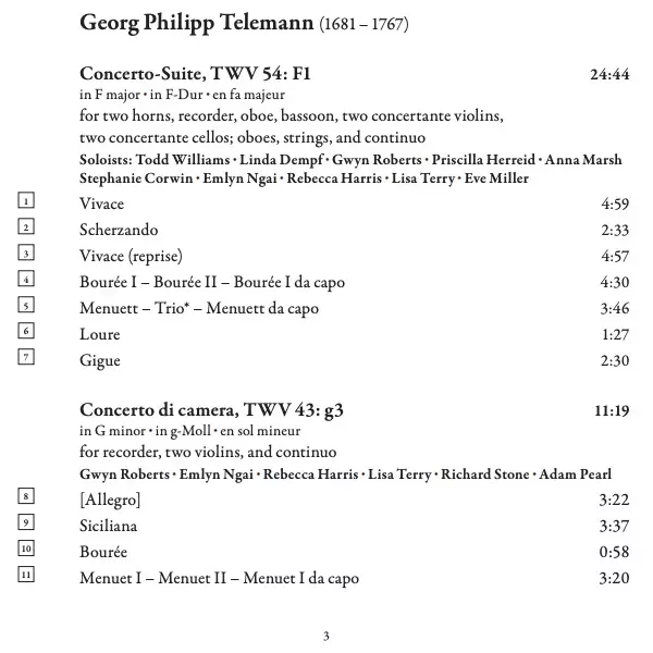 Concerto di Camera, TWV 43: G3 In G Minor • In G-Moll • En Sol Mineur For Recorder, Two Violins, And Continuo | 11:19 min | |
