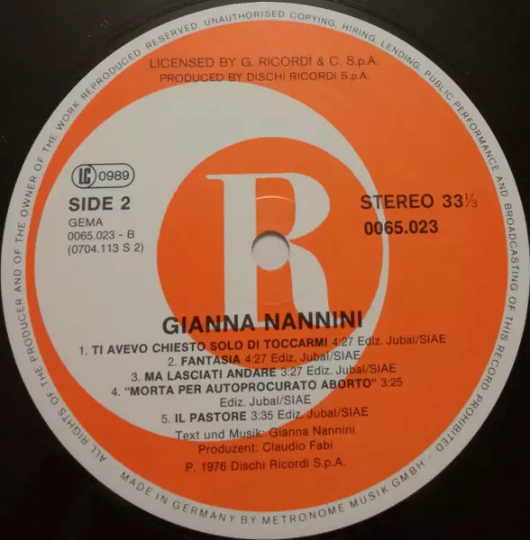 | Mehr Information | 5th Anniversary Ricordi Germany Reissue |