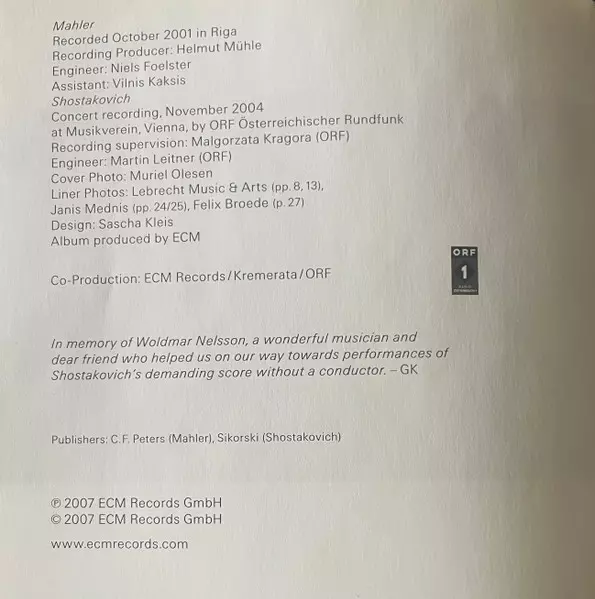 | Künstler | Gustav Mahler | Dmitri Shostakovich | Gidon Kremer | Kremerata Baltica |
