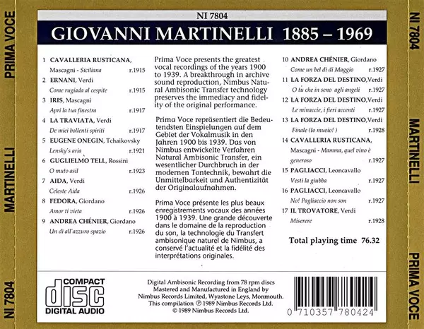 | Baritone Vocals Giuseppe De Luca (3) | Conductor Rosario Bourdon | |||