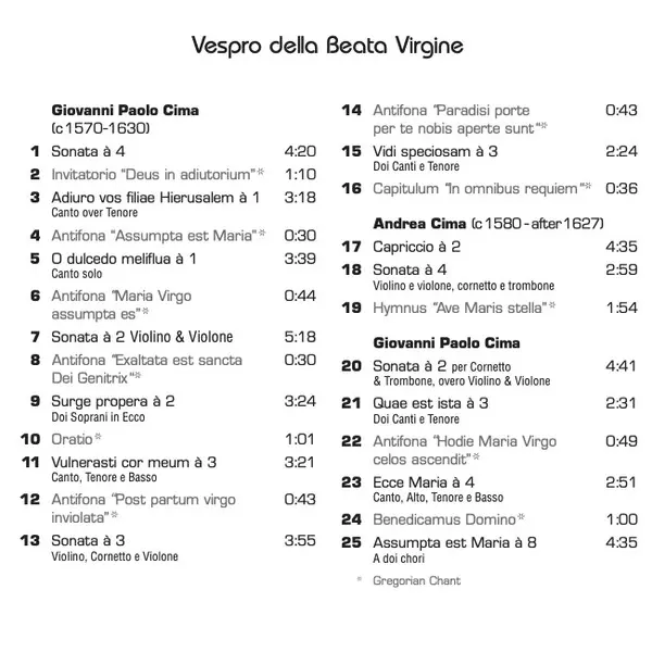 Titel | Vespro Della Beata Virgine |