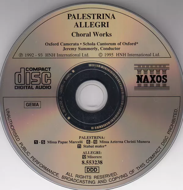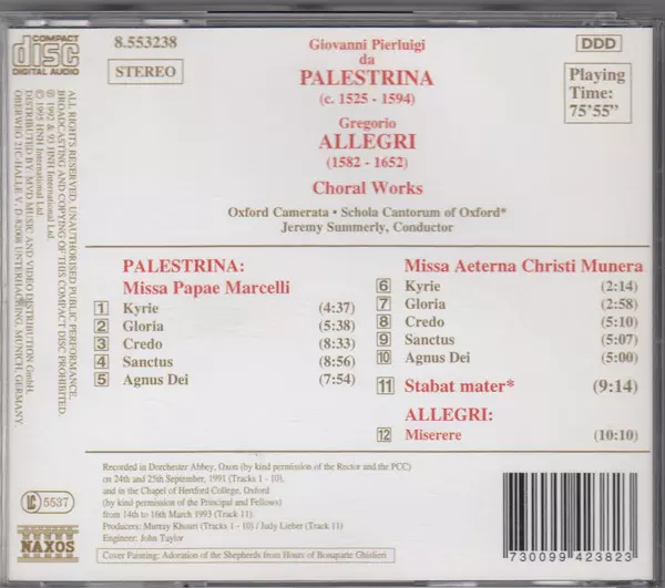 Künstler | Giovanni Pierluigi da Palestrina | Gregorio Allegri | Jeremy Summerly | Schola Cantorum Of Oxford | Oxford Camerata |