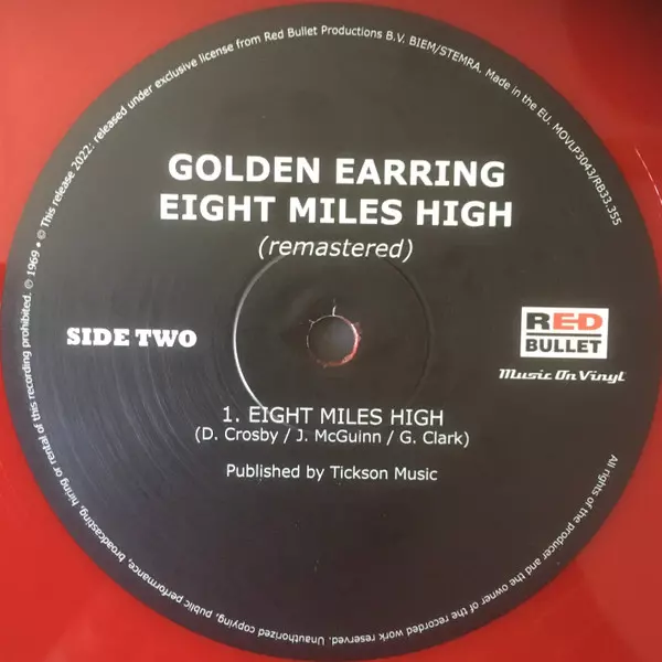 »Eight Miles High« wurde ursprünglich 1969 von der niederländischen Rockband Golden Earring veröffentlicht. Es war das erste Album, das sie unter ihrem ihrem etwas kürzeren Namen, der zuvor The Golden Earrings lautete, herausgebracht haben. Das Album ist nach ihrer Coverversion von The Byrds' »Eight Miles High« benannt, von der die volle 19-Min...