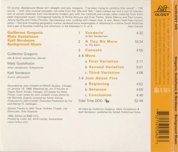 | Künstler | Mats Gustafsson | Guillermo Gregorio | Kjell Nordeson |
