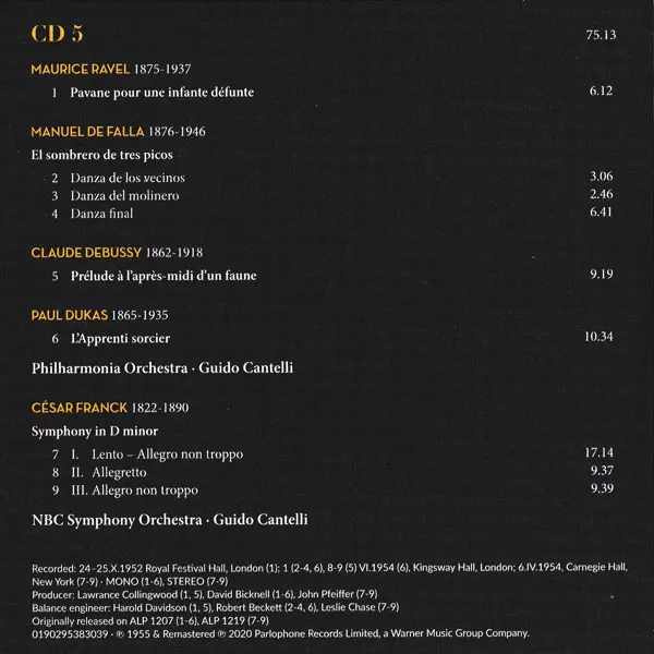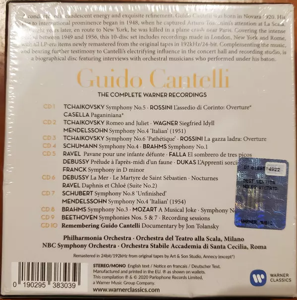 Guido Cantelli: The Complete Warner Recordings Die Version auf 10CD/Box Set in Standard- Auflage. Diese besondere Auflage wurde veröffentlicht in Europa im Verlag Warner Classics am 31. Juli 2020. Album Genres übergreifend Klassische Musik und Romantik.