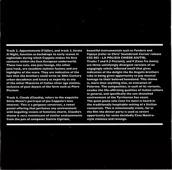 | Titel | Afyon Oppio = The Sicilian Connection (Original Motion Picture Soundtrack) |