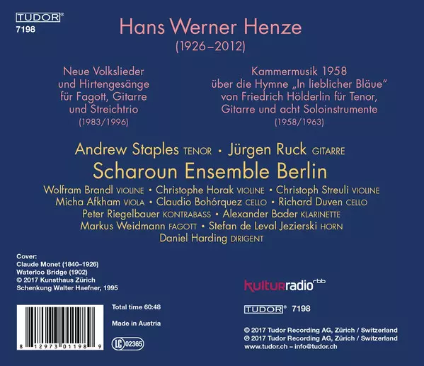 Künstler | Hans Werner Henze | Daniel Harding | Andrew Staples | Scharoun Ensemble Berlin | Jürgen Ruck | Markus Weidmann |