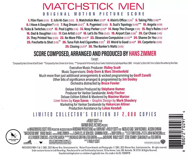 | Titel | Matchstick Men (Original Motion Picture Score) DLX | LTD |