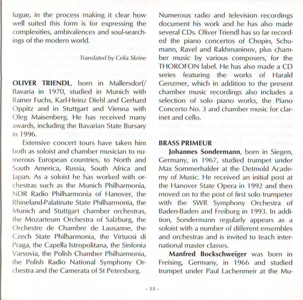 Künstler | Oliver Triendl | Harald Genzmer | Brass Primeur |